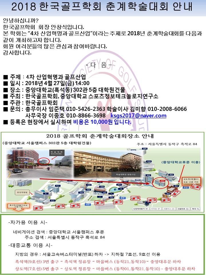2018 한국골프학회 춘계학술대회 안내